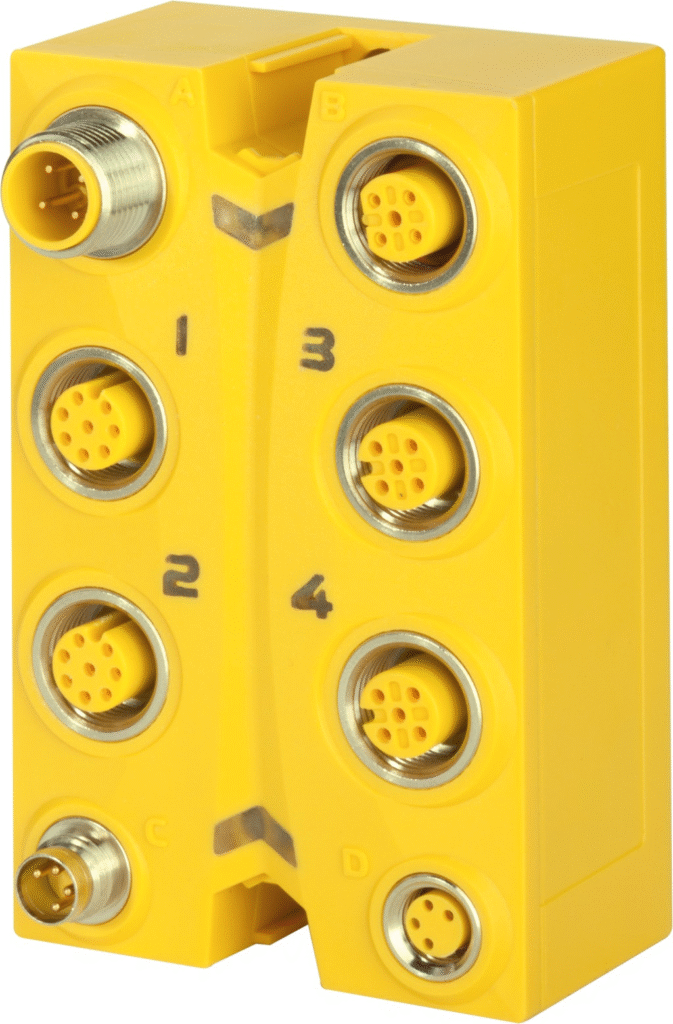 With cycle times starting at 800 µs, the SafeLOGIC series products are the fastest safety controllers on the market. Even complex applications with 100 safety modules and hundreds of signals can be implemented with cycle times below 10 ms. Fluctuation-free data exchange is possible via the POWERLINK real-time network.
